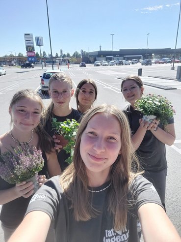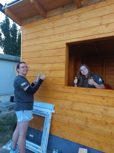 Während wir gerade wieder mit der Arbeit angefangen haben, kamen unsere Mädels von ihrem Shopping-Trip mit Blumen und passenden Farben für das Landjugendlogo zurück. Mit diesen Details wollen wir unserem Projekt am Ende noch den letzten Feinschliff und eine persönliche Note verleihen. Währenddessen war auf der Baustelle einiges los. Die restlichen Mitglieder waren fleißig am Werk: Das Dach des Buswartehäuschens wurde fertiggestellt, weitere Holzteile wurden gestrichen und auch das Aufräumen kam nicht zu kurz. Neben der praktischen Arbeit nutzten wir außerdem die Gelegenheit, einige Videos zu drehen, um die Fortschritte unseres Projektes festzuhalten.🌼🌻🌷