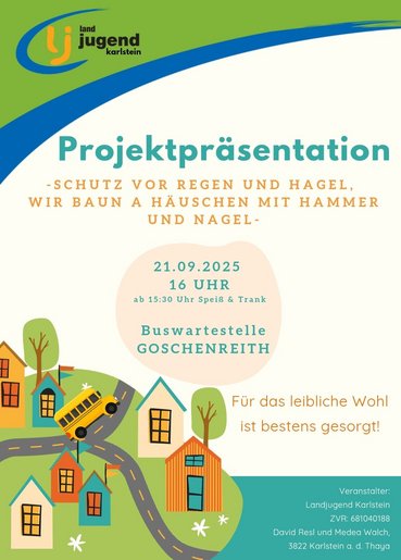 In Goschenreith wurde die Bushaltestelle versetzt. Wir errichten ein neues Buswartehaus für die wartenden Busgäste. Die Aufgabe ist es ein neues Wartehaus, mit Dach und Bankerl zu errichten. Das benötigte Material wird uns zur Verfügung gestellt. 🏠