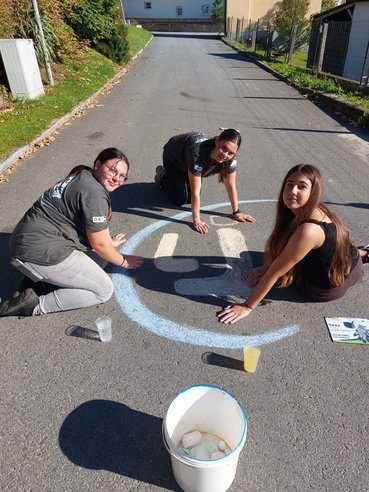 Unsere neuen Mitglieder, die dieses Jahr das erste Mal beim Projektmarathon dabei sind, hatten die großartige Idee, die Straße vor dem Buswartehäuschen kreativ mit Straßenmalkreiden zu gestalten und setzten diese auch sofort erfolgreich um. Hier finden die vielen Kinder im Dorf sicher auch eine Möglichkeiten während der Projektpräsentation das schöne Wetter zu genießen!🌞