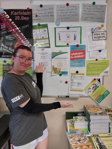 Das Medienteam war auch für die Gestaltung unseres Projektpräsentationsflyers verantwortlich. Mit viel Kreativität und einem Auge fürs Detail entstand ein ansprechender Flyer, der die Gemeindebewohnerinnen und -bewohner zur Präsentation am Sonntag einlädt. Dieser wurde dann gleich fleißig in der Gemeinde und auch auf Instagram verteilt.🌐