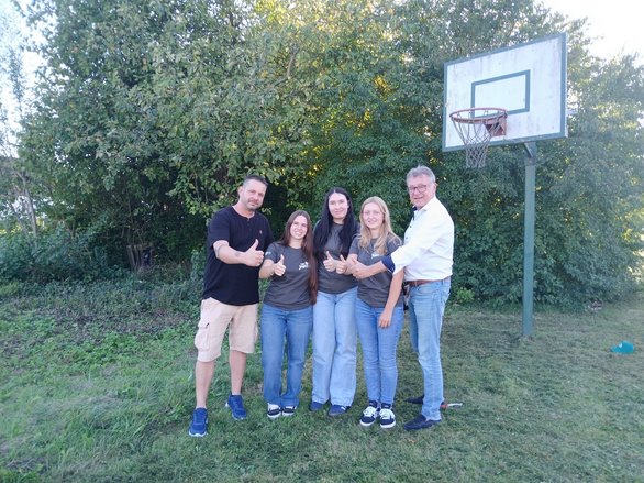 Unser Projektmarathon startete mit der Projektübergabe durch unseren Bürgermeister Martin Falk und Gemeinderat Jochen Schmid. Auch einige Vertreter des Lagerhauses waren bei der Übergabe dabei und versorgten uns mit Getränken und Goodies. Unsere Aufgabe ist es am Spielplatz in Maiersch eine gemütliche Feuerstelle mit Sitzgelegenheit zu bauen.