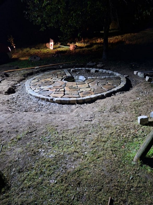 Nach einem kurzen Brainstorming wurde auch schon mit den ersten Vorbereitungen begonnen. Die Sträucher und Hecken wurden entfernt und die Bäume geschnitten. Danach wurde der Grundriss unserer neuen Feuerstelle eingezeichnet.
