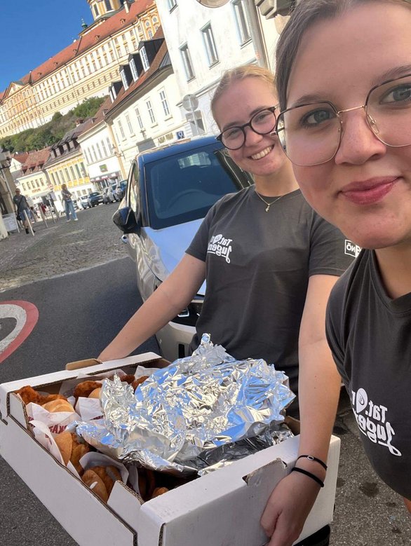 Zur Mittagszeit versorgten uns unsere Mentscha mit Schnitzelsemmeln.