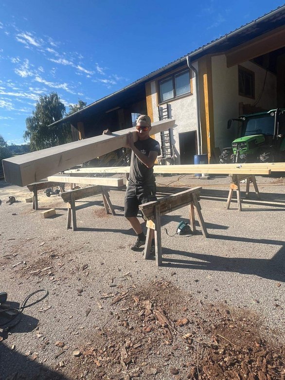 Am Nachmittag legten die Buam noch eine letzte Schicht beim Holz ein, damit alles bald fertig wird. Gleichzeitig kümmerten sich die anderen um die Fertigstellung der Einfriedung.