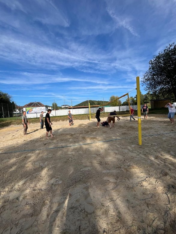 Präsentiert und überreicht wurde uns die Aufgabe von Peter Stütz. Daraufhin machten wir uns voller Euphorie auf zum Ort des Geschehens: Dem Beachvolleyballplatz