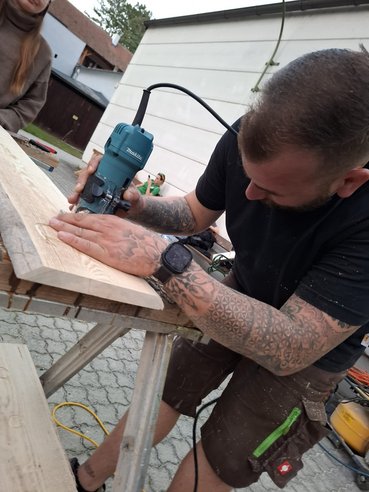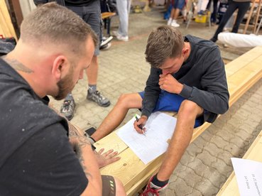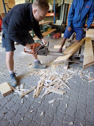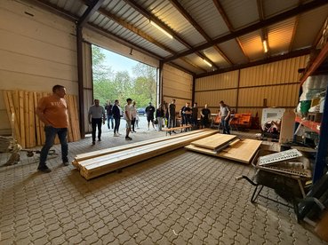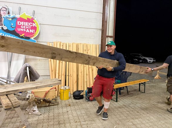 Anschließend ging es direkt los: Wir machten uns auf den Weg, um Materialien zu besorgen – und durften uns dabei über großartige Unterstützung freuen. Die Firma Holzbau Unfried stellte uns nicht nur zahlreiche Werkzeuge zur Verfügung, sondern auch einen Bus für den Transport. Ein riesiges Dankeschön dafür!