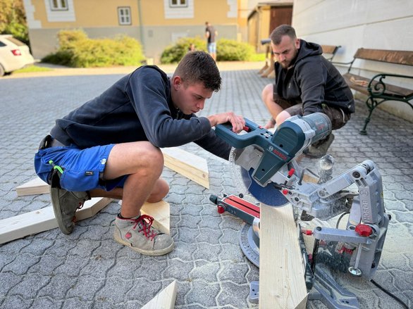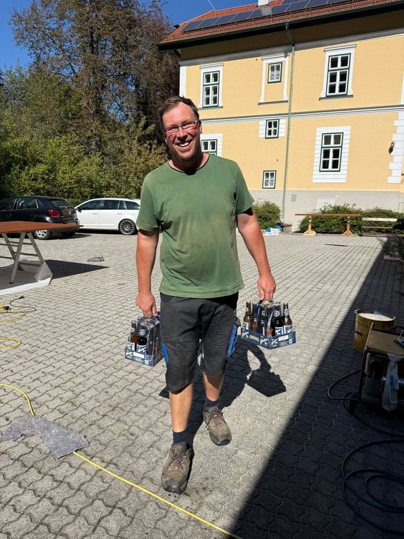 Heute Mittag durften wir Besuch von unserem Bezirksleiter David und unserer Bezirksleiterin Katrin begrüßen. Neben einer erfrischenden Getränkelieferung nahmen sich die beiden Zeit, sich ein Bild von unserem Projektfortschritt zu machen. Außerdem führten sie ein kurzes Interview mit unserem Sprengelleiter Mathias und unserer Sprengelleiterin Alina, um mehr über die Hintergründe und Ziele der Aktion zu erfahren. Zum Abschluss gab es für alle eine wohlverdiente Stärkung in Form von leckeren Schnitzelsemmeln – ein echtes Highlight nach einem arbeitsreichen Vormittag!