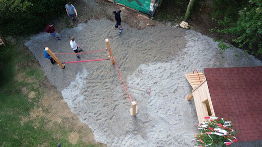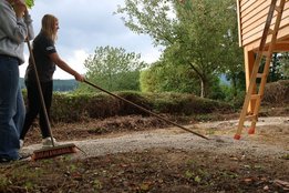 Team Kies & Fallschutz: brachte Kies als Fallschutz unter dem Klettersteig und dem nun entstehenden Münichreither Fun-Tasiehaus aus.