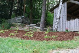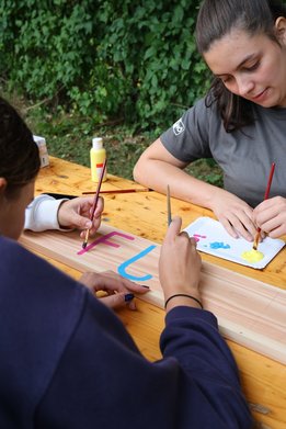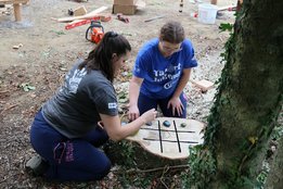 Zusätzliche Nebenaufgaben: einige Teams entdeckten weitere Aufgaben, z. B. das Säubern der Blumenkisten beim ehemaligen Projekt „Bushittl“ oder die Umsetzung eines Tik-Tak-Toe-Spiels aus Steinen und einem alten Holzstamm beim Baumhaus.