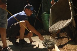 Team Pflasterarbeiten: kümmerte sich um den Eingangsbereich der neuen Sitzgelegenheit. Dort wurden Pflastersteine verlegt und fachgerecht einbetoniert.