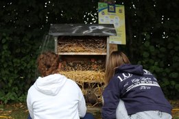 Team Spielplatz „Überblick“: erneuerte rundherum die Pflasterung, putzte das Insektenhotel und brachte es wieder in Schuss.