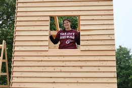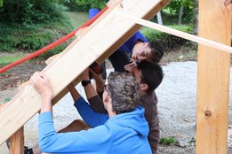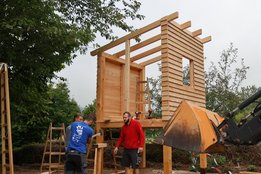 Werd'n am Baumhaus fleißig Balken und Staffeln montiert.
