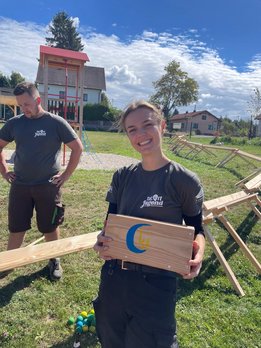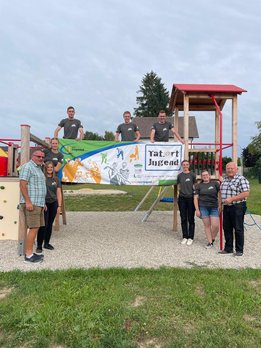 Zum Abschluss wurde der neue Spielplatz offiziell eröffnet und der Gemeinde übergeben – durch Obmann Markus, Bürgermeister Werner Liebhart und Viktoria Hutter. Unter großem Applaus war der feierliche Moment perfekt, und die Kinder konnten den neuen Spielplatz sofort mit Begeisterung ausprobieren.
