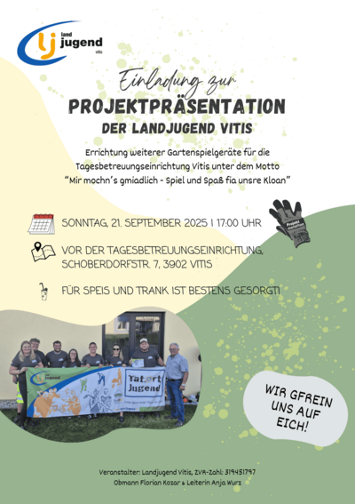 Die offizielle Projektübergabe erfolgt durch Thomas Hagenauer, stellvertretender Landesbeirat der Landjugend, gemeinsam mit unserem Vizebürgermeister Hermann Lauter.