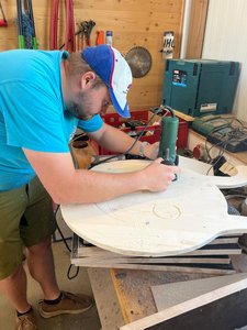 Schon gestern haben unsere Burschen mit dem Bau des Vogelhauses begonnen (ja, wir machen die Zusatzaufgabe vor der richtigen Aufgabe …Prioritäten setzen gehört definitiv zu unseren Stärken 😎). Florian fräst blitzschnell das Landjugendlogo in die Seitenwände – wer zuerst kommt, fräst zuerst. Denn alle lieben das Fräsen.