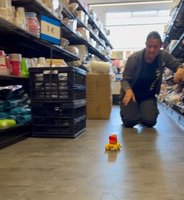 Zwischendurch prüfen die selbsternannten „Fachleute“ die neuen Fahrzeuge der Spielstraße auf ihre Tauglichkeit – wie man auf den Fotos gut sehen kann.