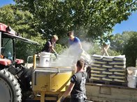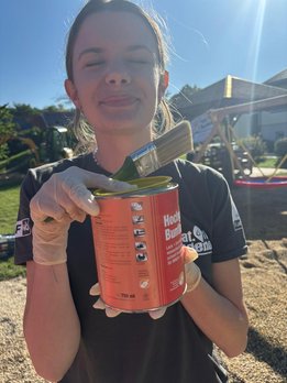In der Mittagspause legten wir einen kurzen Stopp bei unseren jüngeren Ortsbewohnern ein, Diese stellten einen Saftstand auf und zauberten uns damit eine leckere Erfrischung. Wir begannen anschließend den Nachmittag gemütlich mit dem Streichen der Gerüste, welche durch die Witterung ihre Farbe etwas verlor. Also machten wir uns ans Werk. Durch den Wind gab es ein paar Komplikationen, welche unsere T-Shirts farbenfroh und einzigartig machten. Eine Sache die wir etwas unterschätzt haben war die Menge der benötigten Farbe, weshalb wir den ein oder anderen Stopp im Lagerhaus einlegten. Den Abend ließen wir auf dem Ungendorfer Kirtag ausklingen und feierten den zumindest handwerklichen Abschluss des Projekts.