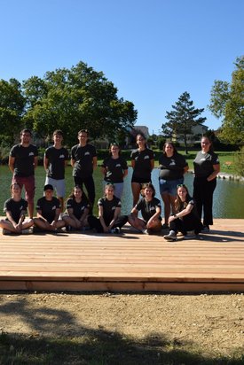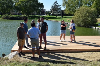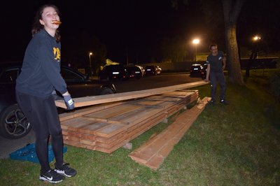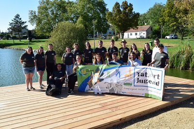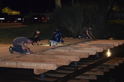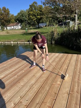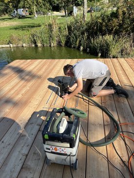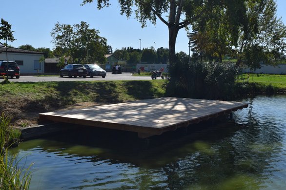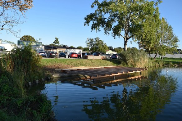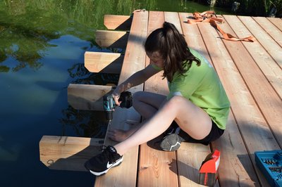 - Errichtet eine Terrasse mit Hilfe von Latten am Schlossteich