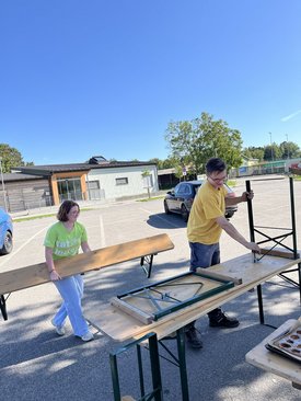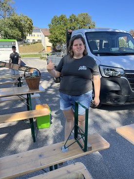 Die letzten Stunden sind angebrochen – und es gibt noch einiges zu erledigen. Während unser Obmann kräftig anpackt, plant unsere Leiterin bereits den Nachmittag: Heute um 15:00 Uhr steht unsere Projektpräsentation an, und natürlich wollen wir bestens vorbereitet sein.