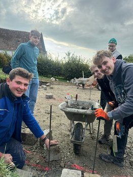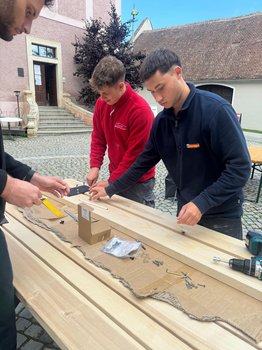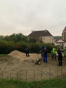 Es ist soweit – unser Projektmarathon in Pulkau hat gestartet! Unser Ziel: Eine selbstgebaute Feuerstelle, die später für viele gemütliche Abende sorgen wird.