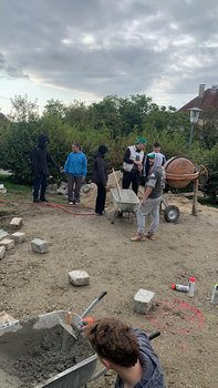 Leichter Regen und ein bewölkter Himmel konnten uns nicht stoppen. Mit guter Laune und Teamgeist ging das Fundament errichten und Betonieren richtig gut voran.